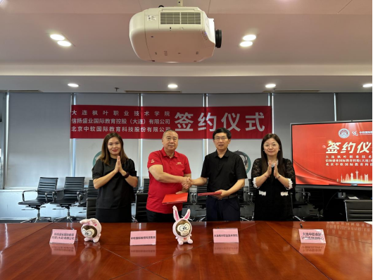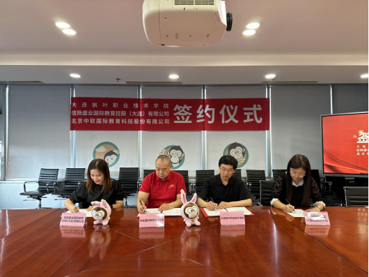 为深化校企合作交流,推进学校和企业协同创新发展,根据《中华人民共和国教育法》、《中华人民共和国民办教育促进法》及我国其他相关法律法规,以国家产教融合方针政策为指引,以产业人才需求为导向,以人才培养成果产出为目标,在新经济业态下,基于共同发展的原则进行新工科的人才培养,共同培养产业紧缺人才,立足辽宁、服务全国,7月6日大连枫叶职业技术学院、信扬盛业国际教育控股(大连)有限公司与北京中软国际教育科技股份有限公司举行校企合作签约仪式。