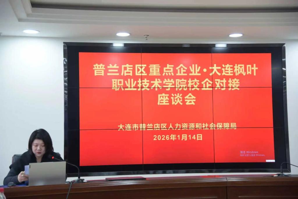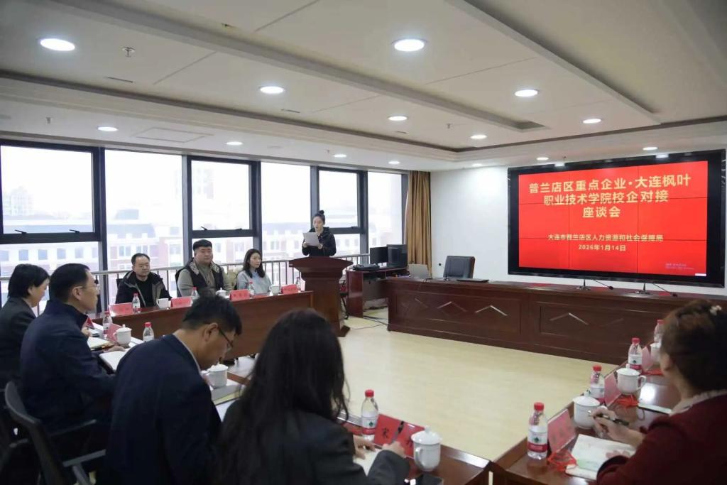 2026年1月14日,大连枫叶职业技术学院受普兰店区人力资源和社会保障局邀请,参加校企对接座谈会,搭建政校企精准对接平台,助力区域经济社会发展。
