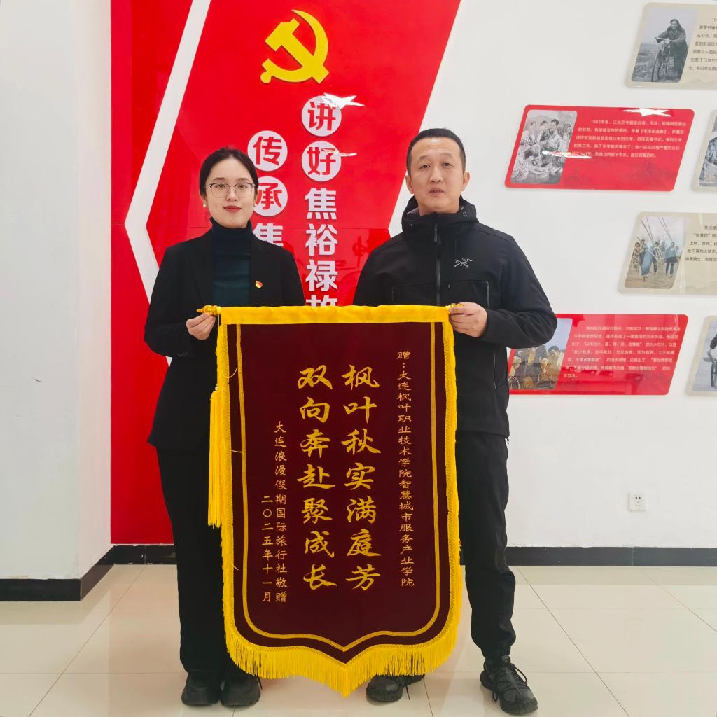 校企协同践育人 锦旗致谢续新章 —— 大连浪漫假期国旅与我院共话研学合作成果