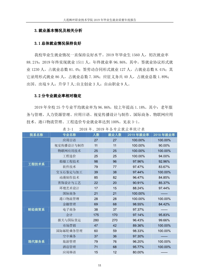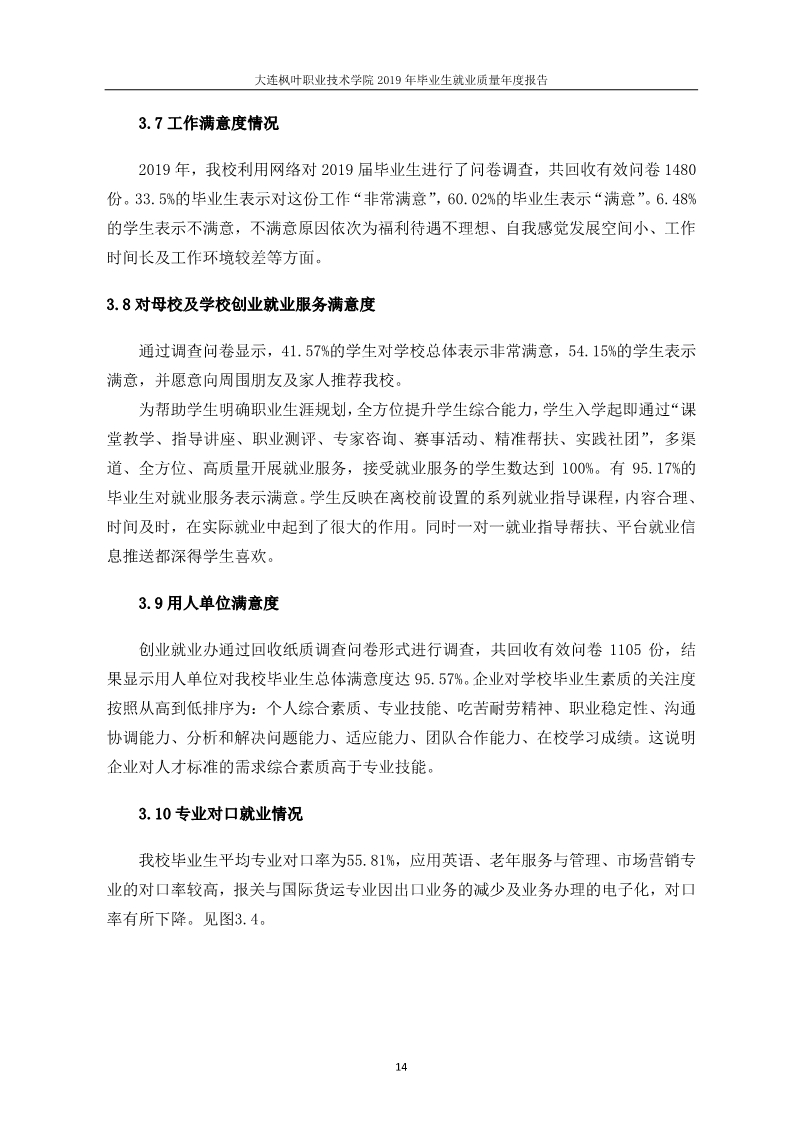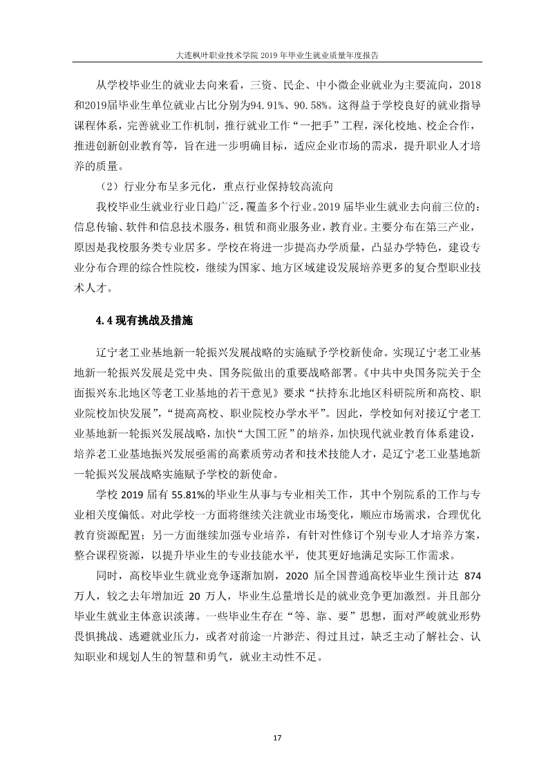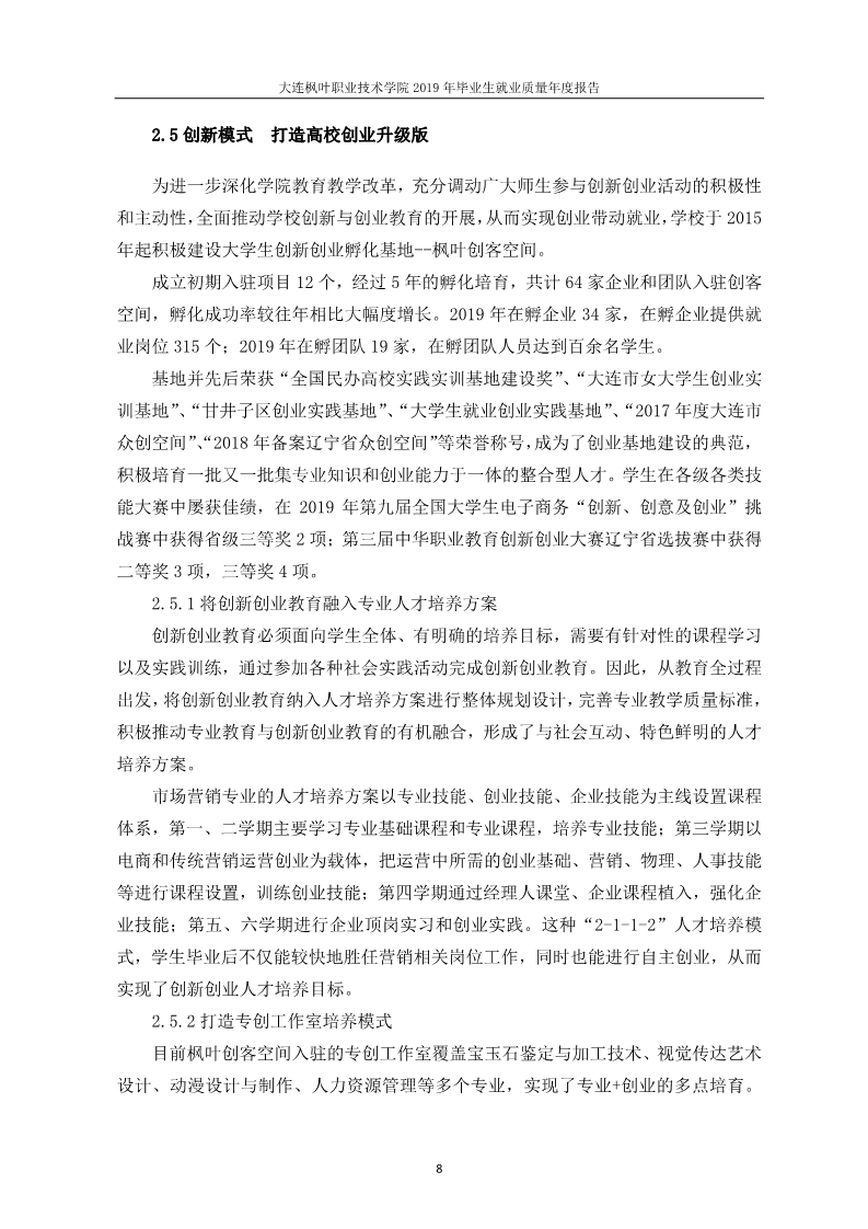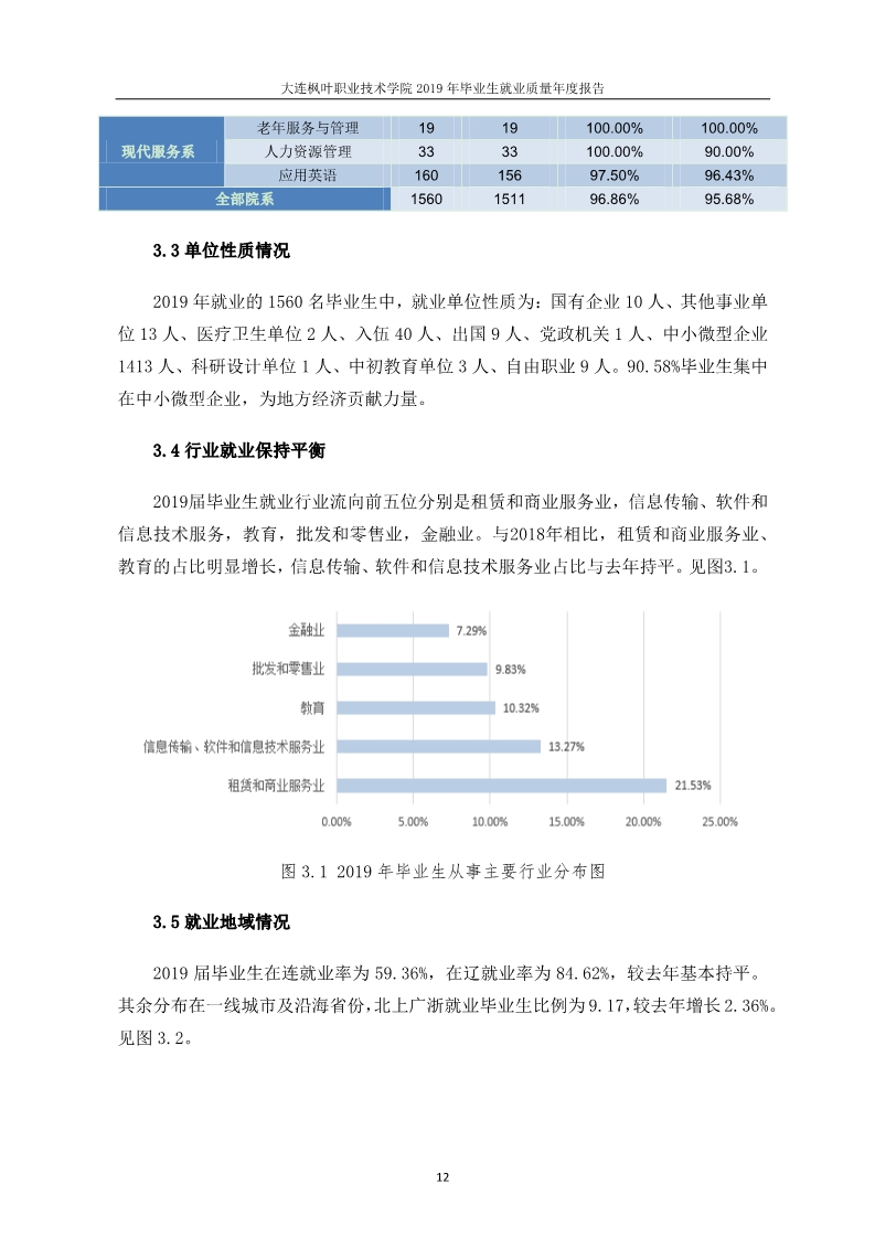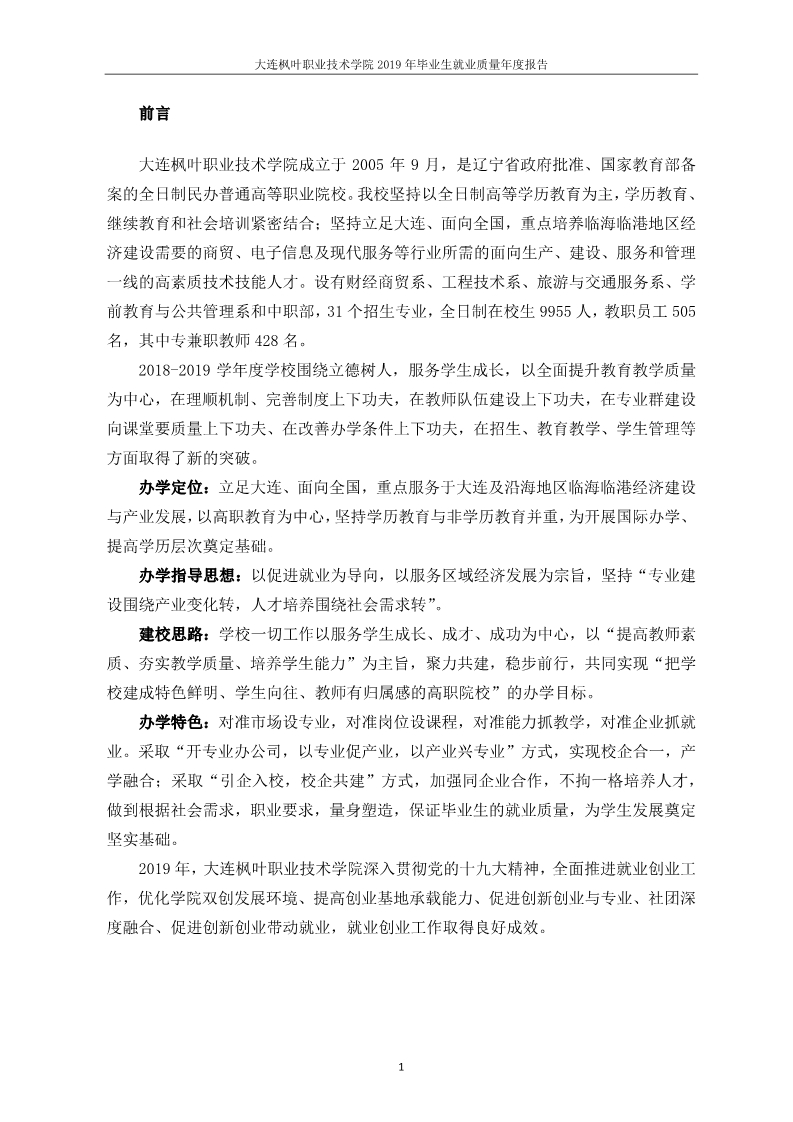 大连枫叶职业技术学院2019年毕业生就业质量年度报告