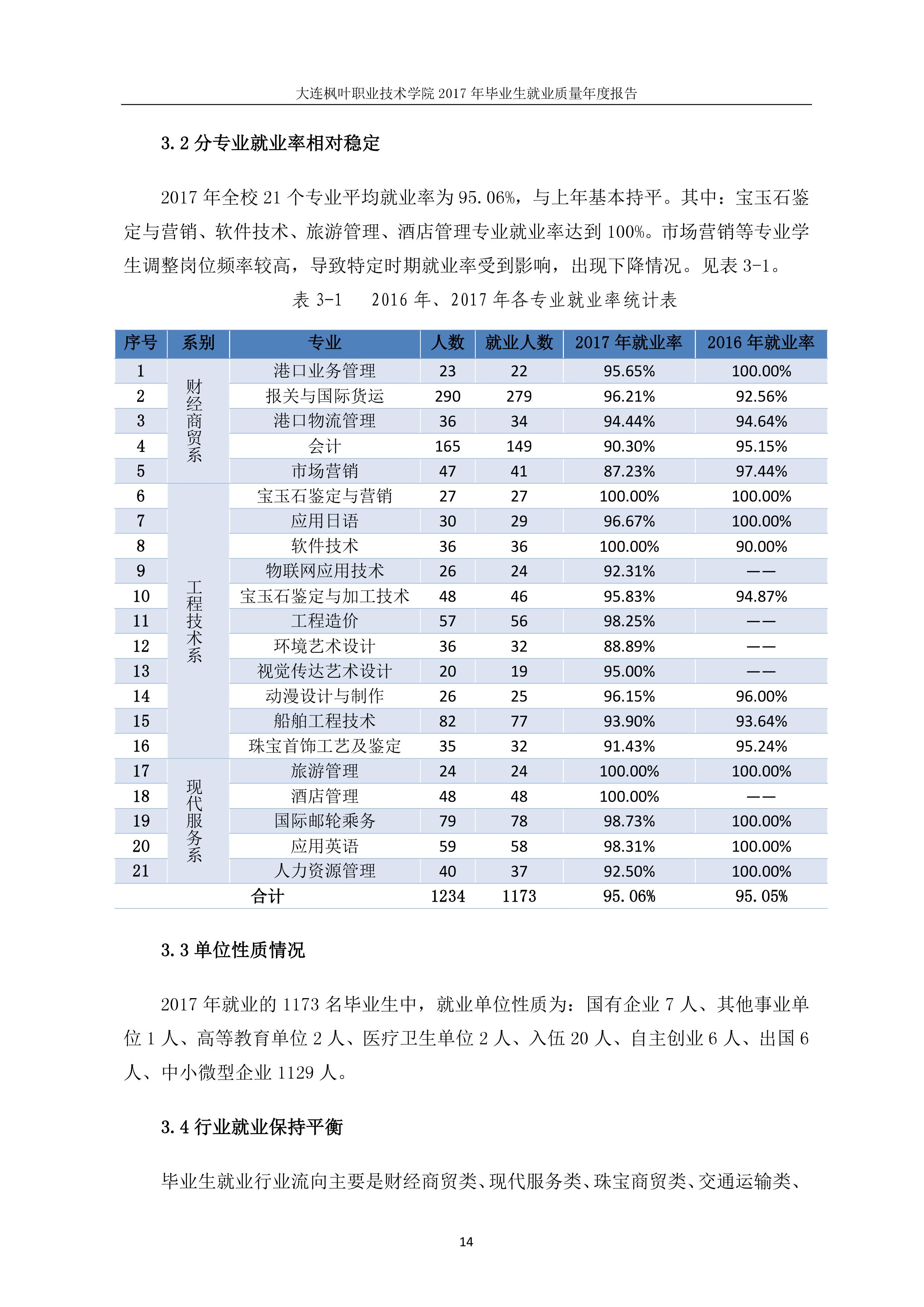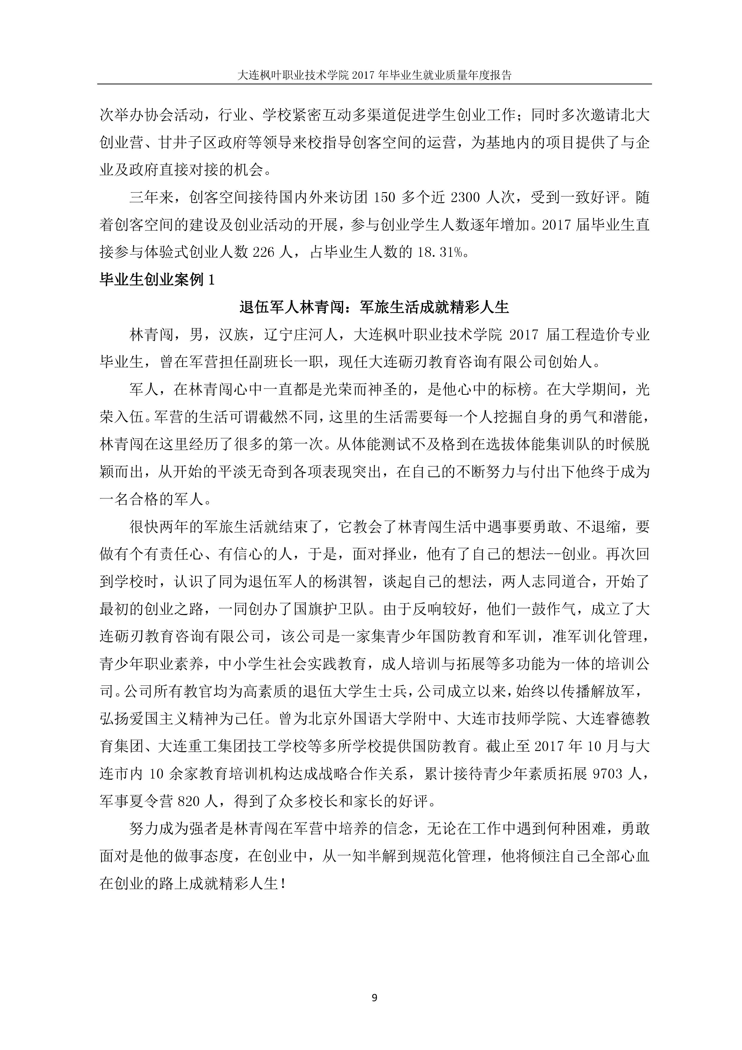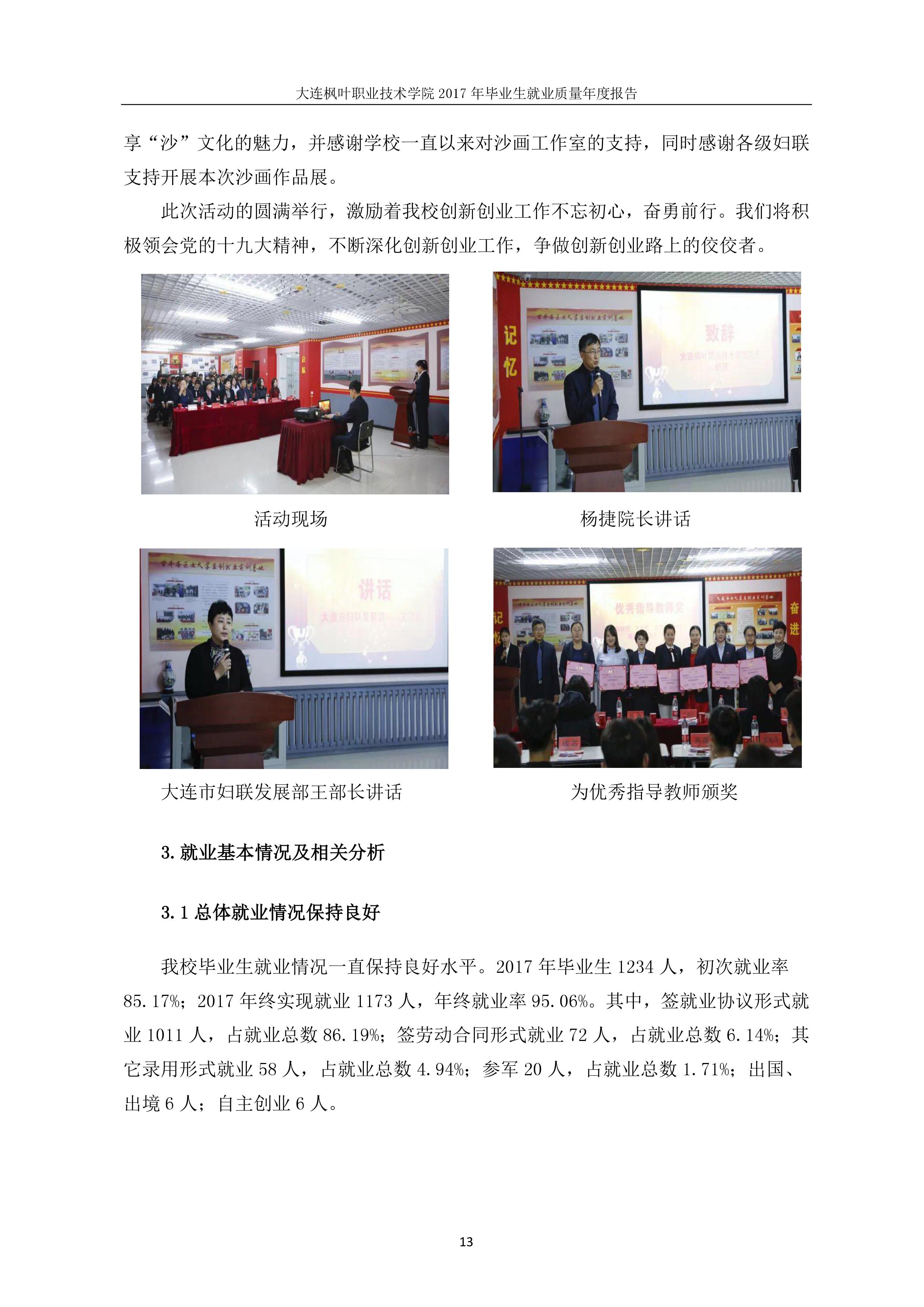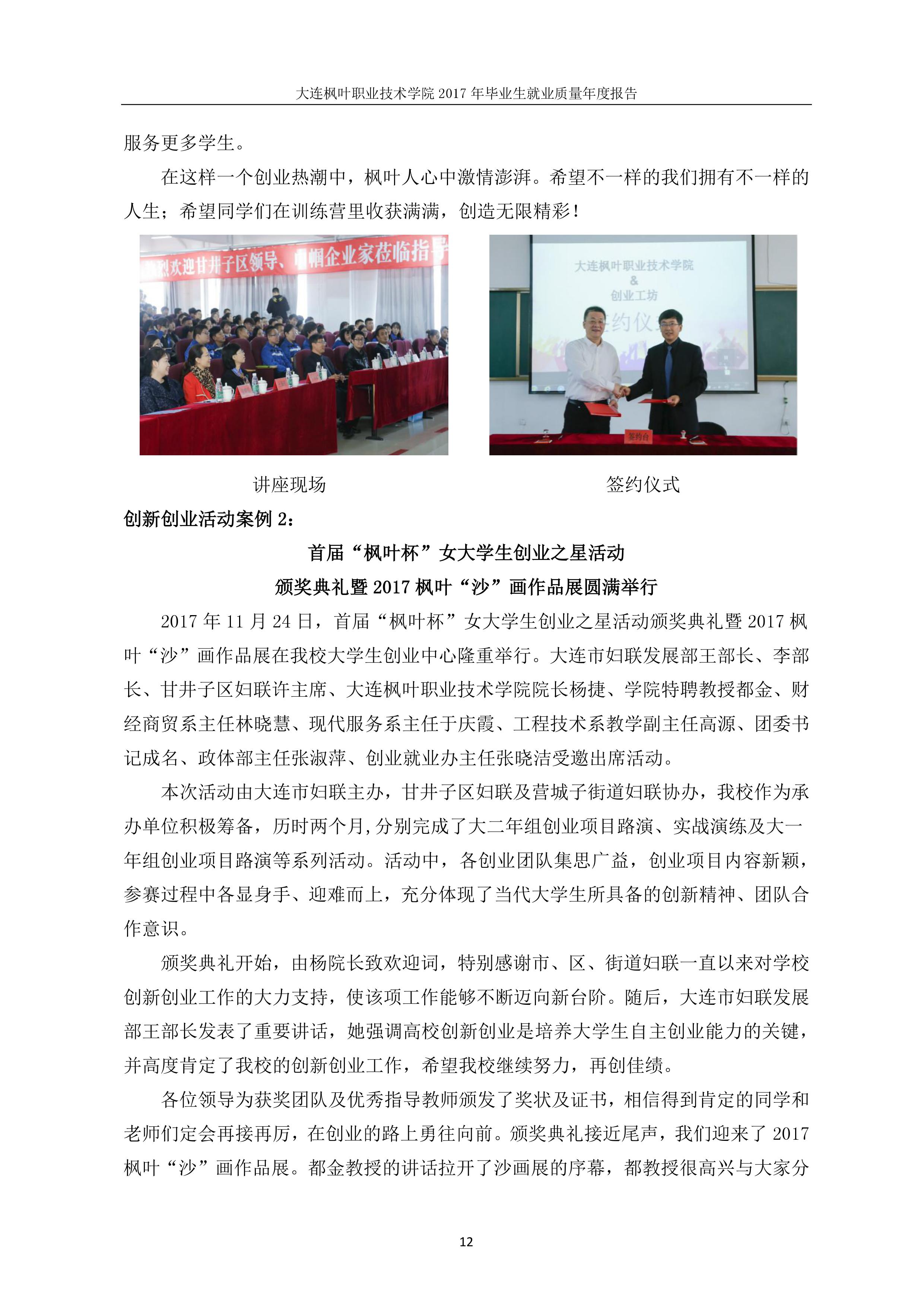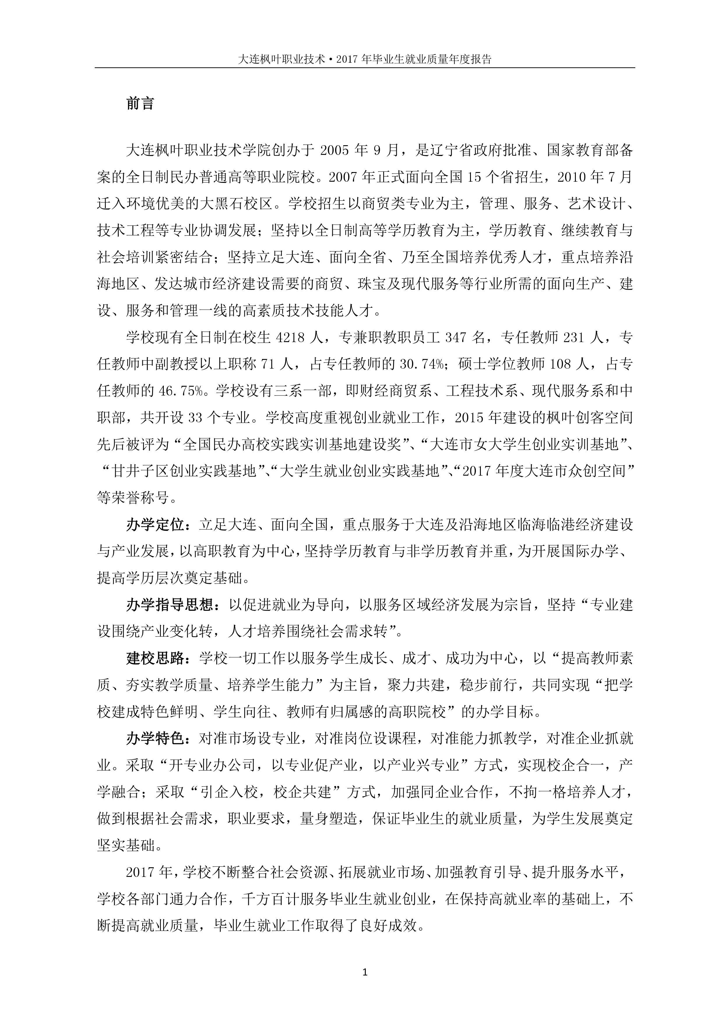 大连枫叶职业技术学院2017年毕业生就业质量年度报告