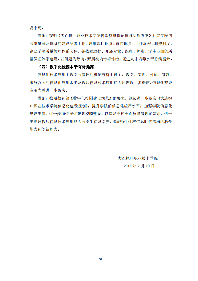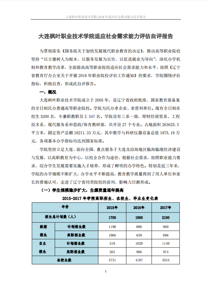 大连枫叶职业技术学院适应社会需求能力评估自评报告