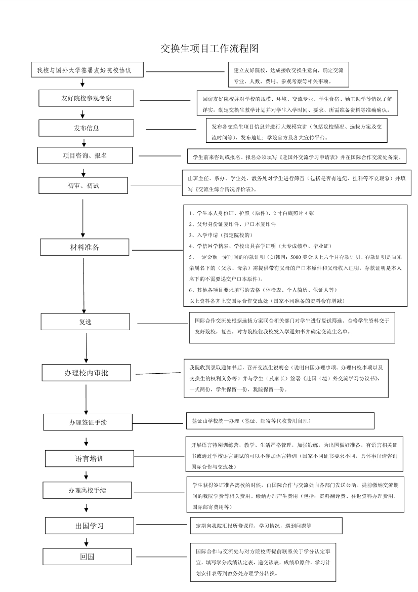 对外交流与合作信息—交换生项目工作流程图