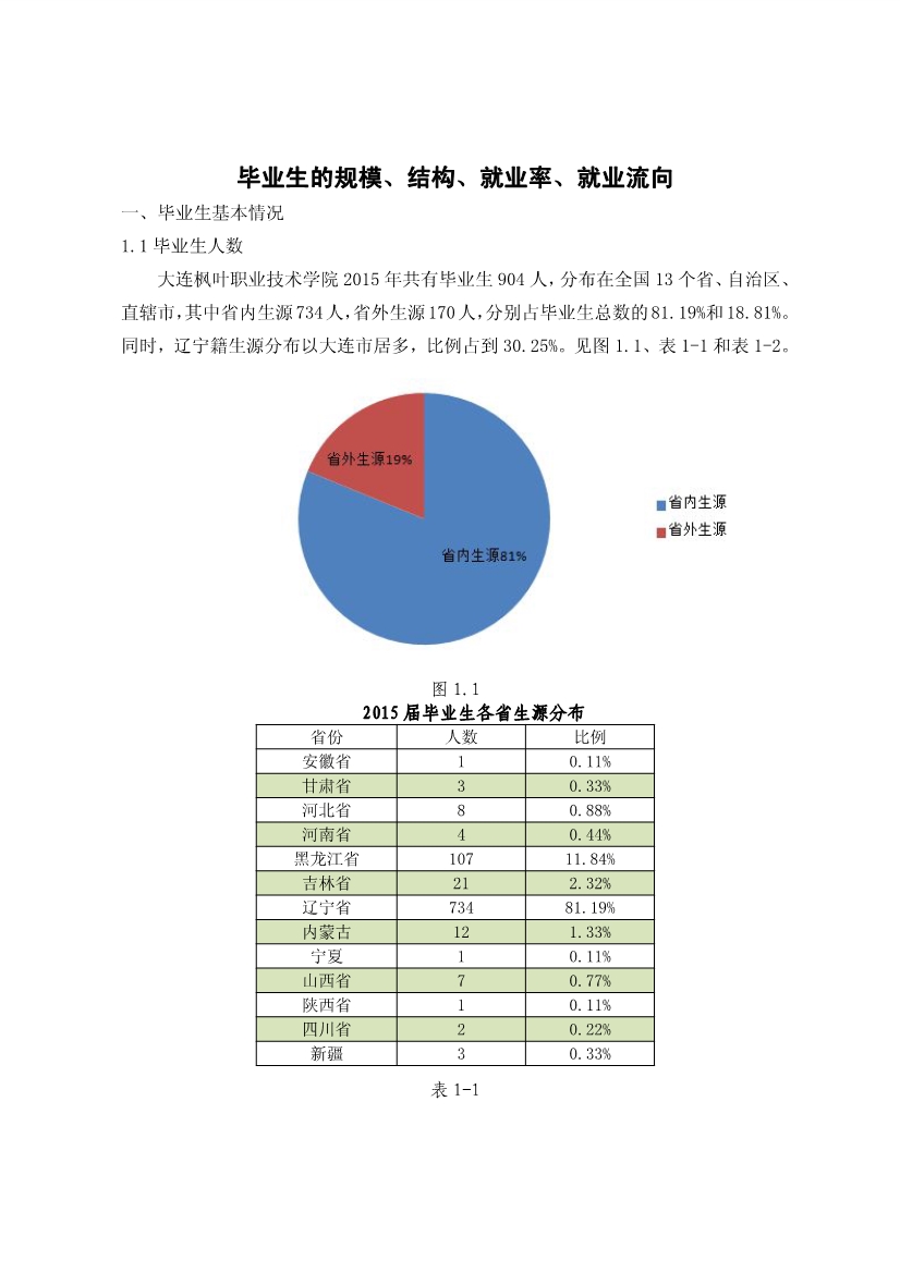 教学质量信息—毕业的规模结构、结构、就业率、就业流向