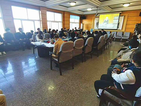 学院党员干部、师生代表参加学习报告视频会