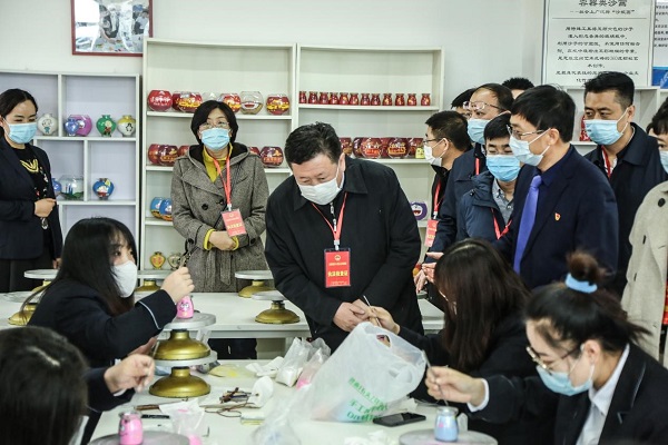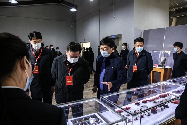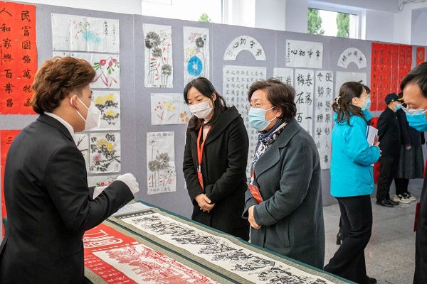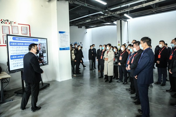 汇报完毕后在学院领导的陪同下,执法检查组参观了幼师专业的师生书画手工作品展。作品展由中国美术家协会会员申泉教授、中国书法家协会会员张永昌副教授亲自指导,使零基础的学生们通过学习有了自己的书画作品,喜欢上传统文化。检查组随后参观了工业机器人实训室和无人机装备及成果展示。工业机器人实训室是学院与大连美嘉洛科技有限公司合作共建的,由企业工程师亲自授课,让学生在校园就可以掌握未来岗位中的技能,真正做到毕业即就业。学院与大连致远创新科技有限公司共建无人机实训基地,师生曾参与大连湾疫情防控无人机消杀和央视新闻录制等工作。检查组还参观了幼师专业的特色课程沙画课实训室和宝玉石专业的玉雕作品和植物扎染作品展。沙画作品曾作为“达沃斯”世界经济论坛的伴手礼;学生玉雕作品由岫岩玉雕大师王延兵亲自指导。检查组参观了学院与大连华成伟业工程有限公司共建的新能源实训室,由企业申成经理进行介绍,该专业建设成果在中国经济导报、中国发展网、大连发改委公众号、今日头条、百度、一点资讯上等多家新闻媒体平台进行了报道并荣获大连市节能工作特殊贡献先进单位。检查组最后参观了将项目融入到教学中的数字媒体应用与软件技术团队作品展,作品中“最美证件照”和各类小游戏不仅为学院师生提供了便捷,还充实了学生们的课余生活。