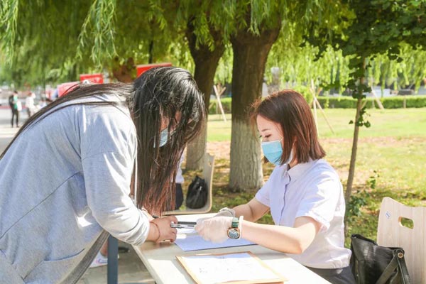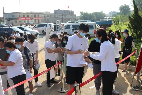 全体监考老师和考务人员履职认真,考生状态良好,整个考试过程严谨有序。中午学院为考生们准备了丰盛可口的午餐,按照防疫要求,学生们全部分桌就餐。下午进行的是部分专业的体检面试环节。