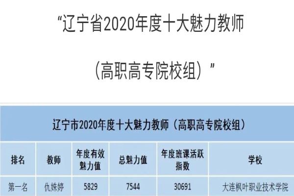 近日,财经商贸系仇姝婷老师在由北京蓝墨大数据技术研究院主办的“2020年度十大魅力教师”省级评选结果中获得第一名的佳绩,在辽宁省高职高专组中占比最高,网络教学成果十分突出!