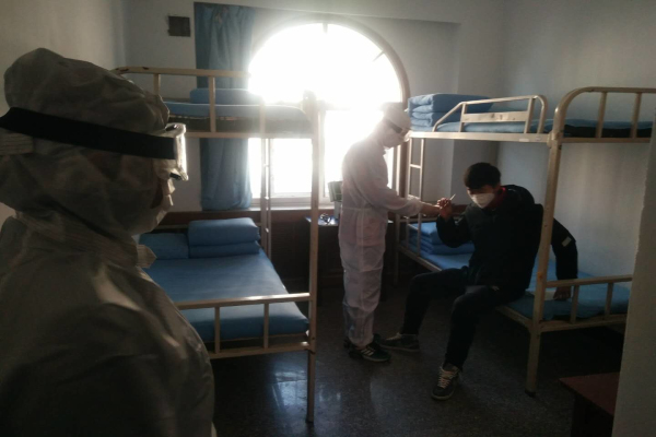 为贯彻落实《辽宁省教育厅关于印发辽宁省高校2020年春季学期疫情防控工作指导方案的通知》、《辽宁省关于组织开展学校疫情防控工作应急演练的通知》等文件精神,紧紧围绕科学规范、有效预防和控制的原则,落实好“早发现、早报告、早隔离、早诊断、早治疗”的有关要求,我院疫情防控指挥部在3月17日举行新型冠状病毒感染疫情防控应急演练活动。学院学生处/保卫处处长高成林、总务处处长杜春艳、综合办公室主任王小溪、中职部主任徐凤龙、财经商贸系副主任孙永海、旅游与交通服务系副主任闫博、中职部副主任赵坤坤、学前教育与公共管理系副主任王和彬、工程技术系团委书记姜占原、食堂负责人马晓静、物业中心经理周超、图书管理员胡俊博、校医何伟等一同参加演练。
