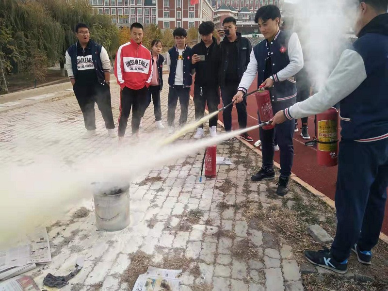 讲解结束后,设置了模拟火场,都书武老师为同学们做了灭火示范,在灭火体验过程中,同学们积极性比较高,练习得都比较认真,体验环节紧张有序。