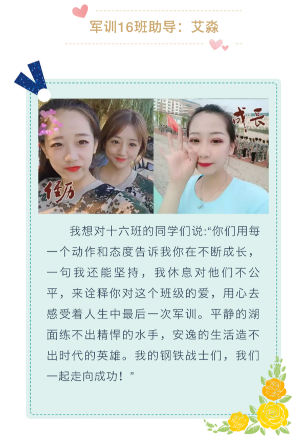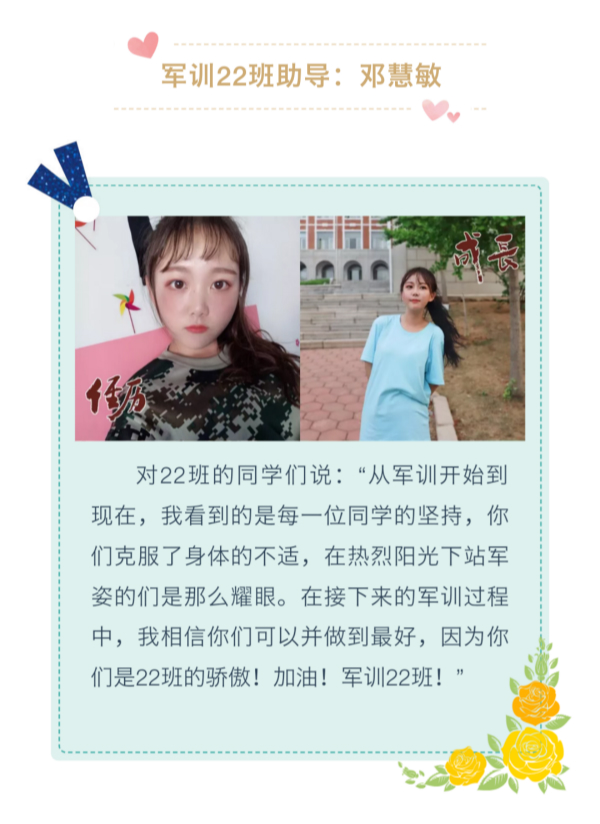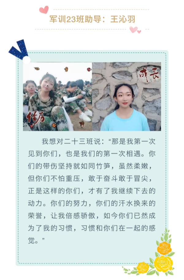 他们是辅导员的好助手,也是同学们的好榜样,他们用两次军训生活向新生们诠释了坚持的力量。