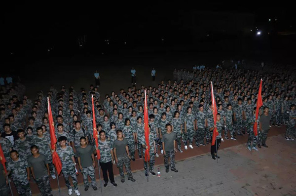 总教官对同学们一天的训练进行总结。