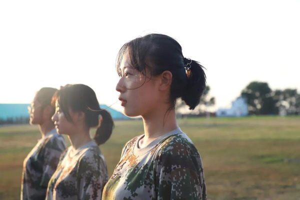 夕阳西下,同学们以夕阳为背景,挺拔的军姿让人心旷神怡。