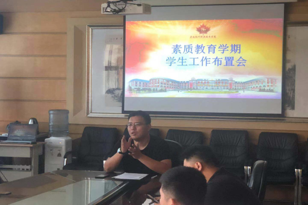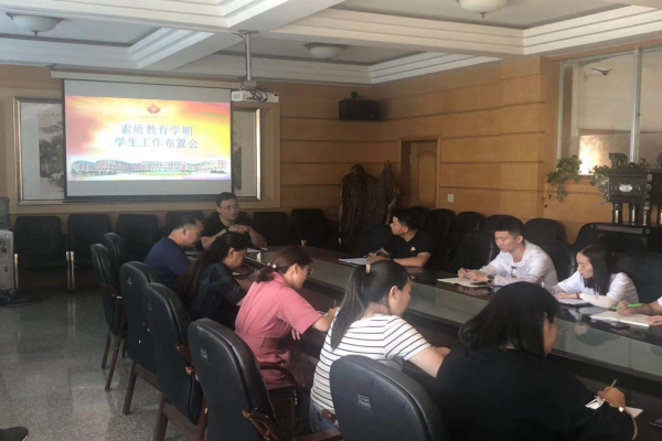 为明确工作任务,使接下来素质学期顺利开展,7月20日下午学生处组织召开2019级素质学期学生工作布置会,学生处处长高成林主持会议,所有学生工作老师、助理辅导员和军训教官参加会议。