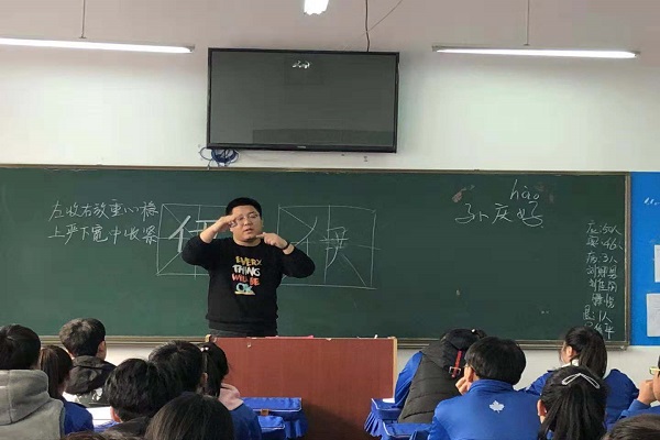 在培训过程中,孙庆好老师生动形象、语言简练地为同学们讲解书写硬笔书法的注意事项,手把手的教同学们正确握笔姿势,更是告诉同学们“只有自己的写字姿势舒服,写出来的字才是好字”。这次培训既让同学们在比赛之前提升了能力,也让同学们放松心情,决赛时好好发挥,写出更优美的中国汉字。