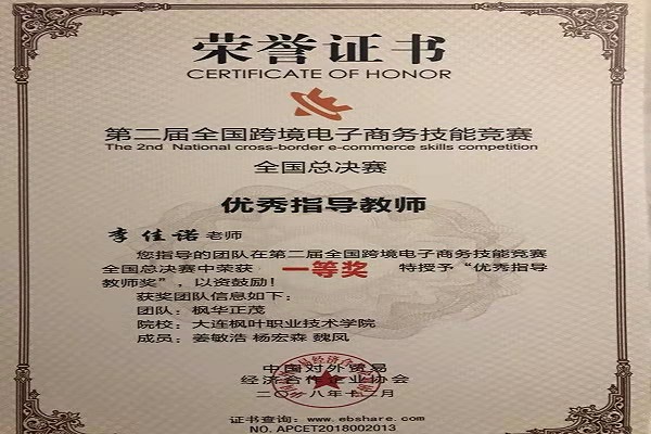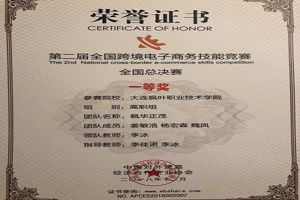 2018年12月1日,我院由李冰、李佳诺老师带队的“风华正茂”队在第二届全国跨境电子商务技能竞赛全国总决赛荣获一等奖!
