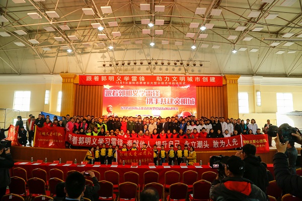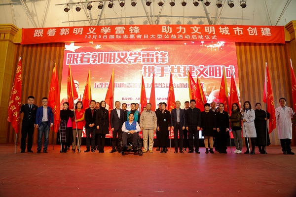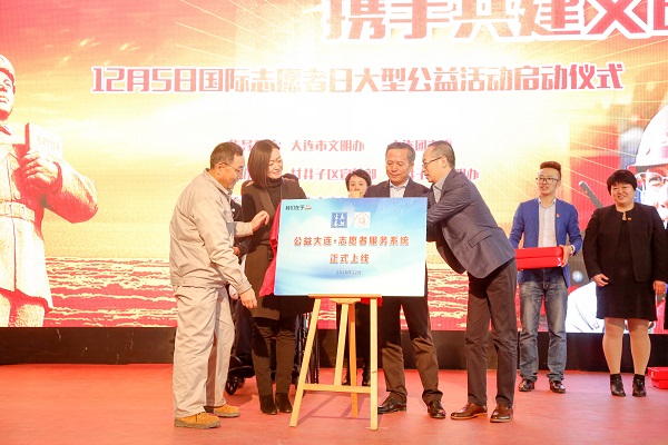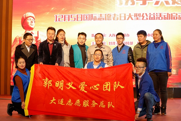 活动上,大连团市委副书记林木宣读习近平总书记给郭明义爱心团队的回信,大连市文明办副主任黄忠义发表讲话,介绍了大连在文明城市创建、志愿服务等方面情况。随后郭明义为全国首支“郭明义爱心团队”志愿服务总队——大连志愿服务总队授旗,为大连枫叶职业技术学院、一汽解放大连柴油机有限公司、大连中心医院、国家税务局大连市甘井子区税务局等15支“郭明义爱心分队”授旗。至此,大连申请成立的郭明义爱心团队分队已有105支。“公益大连”本着“共建公益生态圈,助力精神文明建设”的宗旨,设计、开发了一套基于公益大连微信公众平台的“志愿服务系统”,作为喜迎第33个国际志愿者日的一项重要内容,在全场见证下,公益大连“志愿服务系统”上线启动仪式揭牌。
