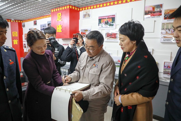 在校期间,郭明义老师在申秀梅书记的陪同下共同参观了大学生就业实训孵化基地和学院党员之家。并留下了“党员模范作用的生动实践”题词。正值学院开展献血活动,他走到献血站现场与同学们亲切交谈,并坐在那里与同学们一起献血。
