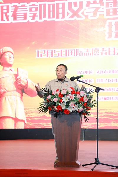 活动首先由党支部书记、副院长申秀梅同志讲话,她首先代表学校欢迎郭明义老师及各位领导的到来,她讲到,雷锋精神就是“把有限的生命投入到无限的为人民服务之中去” 的全心全意为人民服务的奉献精神;是干一行、爱一行、钻一行,立足本职,尽职尽责“钉子”精神;是党叫干啥就干啥,在平凡中干出不平凡业绩的永不生锈的“螺丝钉”精神;是中华民族勤俭节约、艰苦奋斗精神。郭明义老师以自己几十年如一日的无私奉献,传承着雷锋同志全心全意为人民服务的赤子情怀,用实际行动书写了新时代雷锋故事,体现了人间真情与大爱。最后她号召全体志愿者们,以习近平新时代中国特色主义思想为指导,全面贯彻习近平总书记关于东北、辽宁振兴发展的一系列重要指示精神,深入学习领会践行“长子情怀、忠诚担当、创新实干、奋斗自强”的新时代辽宁精神。用爱心传承文明,用真情奉献社会,秉承“奉献、友爱、互助、进步”的志愿者精神,让雷锋精神在滨城大地薪火相传,让文明之花开遍滨城每一个角落。