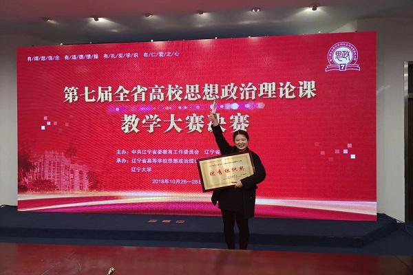 由辽宁省委教育工委、省教育厅举办的“第七届全省高校思想政治理论课教学大赛” 10月28日在辽宁大学落下帷幕。我院思政课教师于杨荣获一等奖,马爽荣获二等奖,张莹荣获三等奖,大连枫叶职业技术学院获得优秀组织奖。决赛当天由申秀梅院长带队,与我校部分教师参加了现场观摩与领奖。