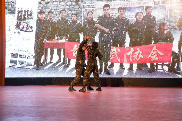 银色灯光下这群模特们身段妖娆的走秀为晚会的进行营造了热烈的气氛。随后,现代服务系九大专业的朗诵,手语社团的手语表演,龙之武协会的格斗表演,国旗护卫队的倒功集合,18高铁234班、18空乘1班的现代舞串烧等学生们精心准备的节目一一登场亮相,这些节目涵盖了歌曲、舞蹈、朗诵等方面,充分向学院领导展现了先锋学子多才多艺、自信昂扬的风采。激起在座同学们的阵阵掌声,鼓掌声经久不息。