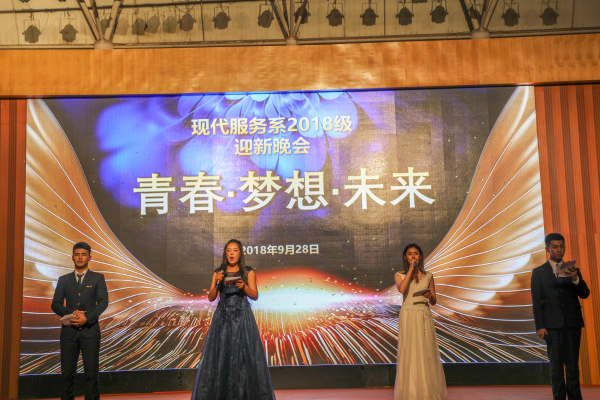 流光溢彩迎新夜,心心连心齐飞扬。为迎接2018级新生的到来,展现现代服务系的学子风采,2018年9月28日在学院综合馆举行了隆重的迎新晚会。此次参加晚会的嘉宾有党支部书记、副院长申秀梅、团委书记成名、团委学生处保卫处处长助理吕运福、现代服务系主任于庆霞、学生管理副主任闫博,财经商贸系团委书记王玉环、现代服务系团委书记隋新,学生工作教师杨世平、王博以及18级全体辅导员老师。