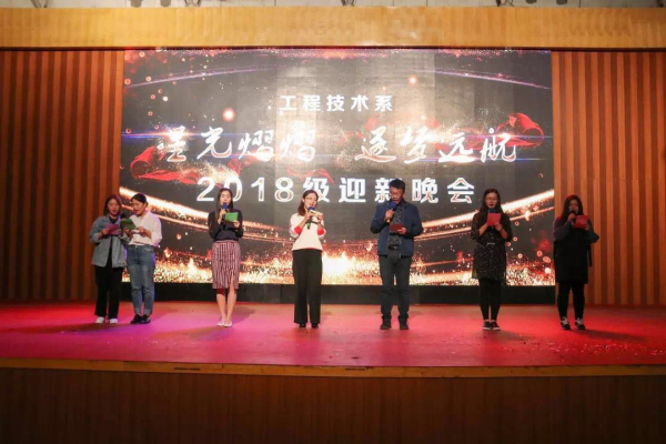 其中辅导员周永福老师代表2018级全体辅导员祝同学们在枫叶大家庭里学习着,快乐着。在新的征程中青春不悔,不忘初心,砥砺前行!晚会最后由申院长总结讲话,希望工程技术系2018级新生们秉承着工匠精神精益求精的精神开起大学的新篇章。