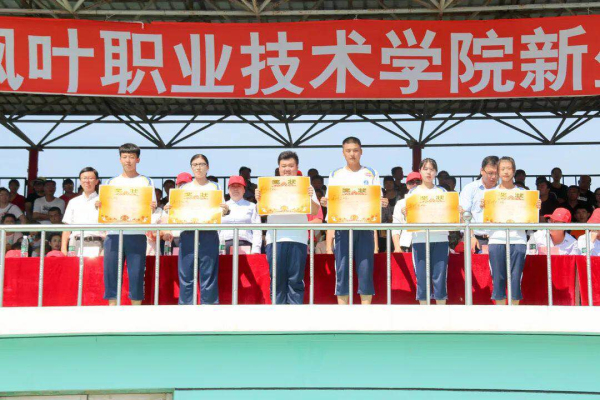 花式队列、军歌演唱、军体拳展示、手语操表演、搏击术、表演方阵内容个个精彩纷呈,队列整齐、军歌嘹亮、军体拳刚健威猛,搏击术凌厉精炼、节奏分明。一个个干净利落的动作一声声响彻天际的歌声,各支方队整齐划一,使观众感受到的,不仅是视觉上的盛宴,更是受到了精神上的鼓舞。学生们稚嫩的脸庞显得格外坚毅。同学们精神饱满,口号响亮、充分展现了枫叶学子的良好风貌。学生代表发言,军训2班马梦涵,她代表全体受训新生,感谢15天以来,不求回报、不辞辛劳付出的教官、老师和助理辅导员。向提供优质服务的后勤保障人员、舍务老师表示感谢,她对于未来在枫叶的学习生活充满希望。接着由团委学生处/保卫处处长高成林宣读,本次军训获奖先进个人与集体,学院领导为获得集体荣誉的军训班级和个人训练标兵、军歌比赛,内务标兵、精神文明班级,综合量化评比等进行颁奖。