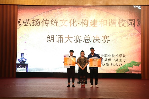 为进一步宣传贯彻党的十九大精神,挖掘与诠释中华民族传统文化内涵,彰显中华语言文化魅力,引导学生养成诵读国学经典的良好习惯,把传统文化的精髓融入到校园中,让其在校园中遍地开花。2018年6月20日,学院在综合馆三楼开展了传统文化朗诵大赛总决赛。