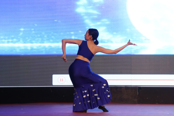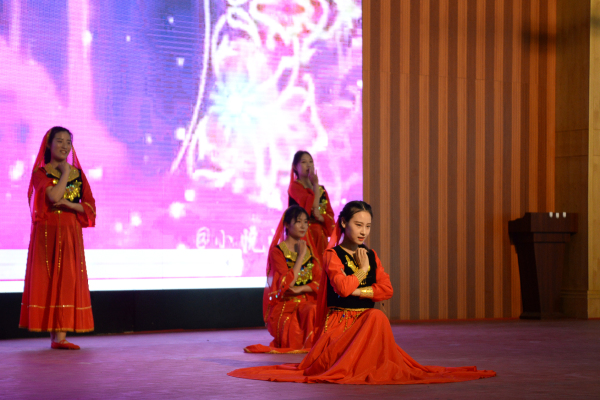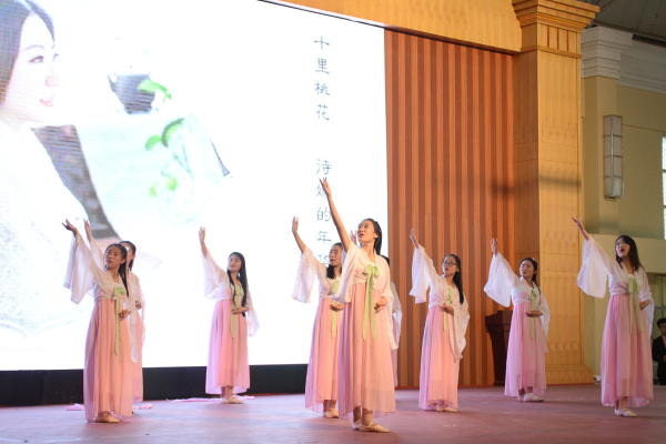 开场一首优美的《离人愁》,拉开了比赛的帷幕,台下同学们热情高涨,为台上的每一位选手加油、助威。在众多的舞蹈中,其中让人印象深刻的是17幼师三班高媛媛的民族舞,她身着耀眼蓝色刺绣舞衣,随着轻快、明亮而又平和的背景音乐缓缓奏出,自如地挥动,轻迈舞步,舞蹈的动作潇洒干净,却不失高雅,让观众领略别样的少数民族风情。整场比赛精彩纷呈,高潮不断。财经商贸系舞团《Hip hop Fever》燃爆全场,酷炫亮眼、色彩变幻的灯光秀配合节奏激烈、振奋精神的音乐让全场气氛达到了顶点。而现代服务系带来的舞蹈《半壶纱》又瞬间将观众带入了浓浓的中国古典舞的氛围中,引入甩袖的元素,让人移不开目光。这是一场古典与现代、热情与婉约碰撞的舞林大会。大赛最后由现代服务系17邮轮王寅楷同学演唱的经典歌曲《鸿雁》落下帷幕。最终《民族舞串烧》获得了第一名的好成绩,在同学的欢呼雀跃下,本次比赛圆满结束。