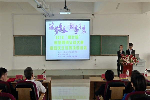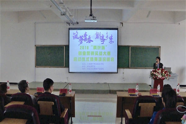 为发挥我院创新创业优势,提高学生服务社会的能力,助推精准扶贫,由学院主办、财经商贸系承办的2018“枫叶杯”创业营销实战大赛得到了大连鸿益大成樱桃产业基地的大力支持。2018年5月17日15点,于学院财经商贸系二号教学楼西多媒体举行了2018“枫叶杯”创业营销实战大赛启动仪式暨赛项说明。