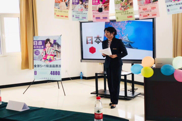 17级旅游管理专业作为主办单位,在会议筹划阶段就展现出极大的热忱,以旅游行业推介会作为参照标准对会场进行精心布置,同时对旅游目的地视频、讲解PPT、X展架、海报等宣传等做了细致的准备;会议期间,17级学生代表孙晓晶同学对日本的基本概况进行讲解;17级学生代表赵馨媛对日本人文景观、著名旅游景区景点等进行了详细讲解;16级学生代表贺金明同学同时以大连大运通国际旅行社同业销售身份回到学校对日本特色旅游线路、日本签证客人所需提供的材料、日本签证申请表的填写等进行详细的讲解;推介会过程中,与会教师、学生认真听讲,积极参与互动,会场气氛热烈、高涨;最后,旅游管理专业教师对三位学生的精彩演讲进行了点评。实践证明,学生能够较好的完成旅游线路推广工作,学生实际操作能力得到我校专业教师的认可。