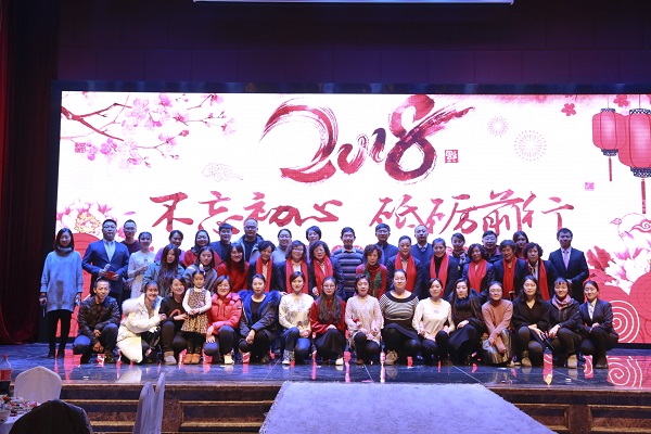 2017年12月30日上午11:30我院在团山花园酒店举办“不忘初心,砥砺前行”2018教师新年联欢会。院长杨捷、党支部书记/执行院长申秀梅、招生就业副院长解建国、行政副院长金晓晖、财务处长杨刚、特约嘉宾张振恒老师、都金老师以及全院教职员工、家属参加了本次联欢会。