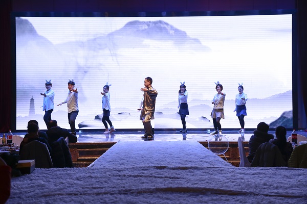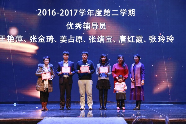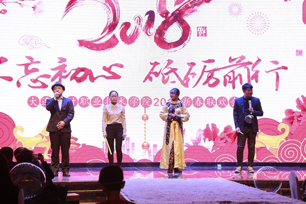 为响应十九大精神,本次年会以“不忘初心,砥砺前行”为主题,包括“同舟共济”、“百舸争流”和“扬帆启航”三个分主题。年会以合唱、舞蹈《国家》开场,家与国连在一起突出了年会和谐美满的寓意。开场节目后,我院杨捷院长致辞,杨院长指出,过去的一年,在注入了新血液的领导团队和全院教职员工的共同努力下,学院各方面工作均取得了满意成效,呈现欣欣向荣、蓬勃发展的好势头,招生就业、教育教学、学院建设等方面均取得了骄人成绩。新的一年,学院的发展将面临更多机遇与挑战,我们有信心与全院教职员工一起创造枫叶新的辉煌!接下来的节目形式多样,财经商贸系的舞蹈《青花瓷》将东方女性的美展现的淋漓尽致;现代服务系在歌曲串烧《友谊之歌》中加入俄语演唱部分,与歌名中的“友谊”交相呼应;工程技术系的《太极舞》将传统的太极拳与现代舞结合在一起,形式新颖、寓意深厚,其他几个节目也都精彩绝伦,赢得台下阵阵掌声。奖优环节对上一学期在各方面表现突出的集体和个人进行了表彰,同时也对在各项大赛、考试中取得突出成绩的教职员工进行了奖励。在年会上,我院工程技术系干事姜占原老师向相恋十年的爱人求婚,全场感动落泪。我院建校十五年来,有很多教职员工都是大学毕业就来到学院工作,与学院共同成长、共同进步,收获了事业与幸福。随着学院的发展建设,这些经历也成为学院与教职员工共同的美好回忆。年会的生日会、抽奖、游戏等环节也是精彩纷呈,惊喜不断。