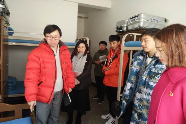 按照学校新学期工作目标,以真抓实干的精神创新发展,密切联系学生、改进工作作风,2018年3月8日8:30,学院党支部成员解建国、聂俭丽、各党小组组长、学生管理工作老师一行10人走进学生寝室。
