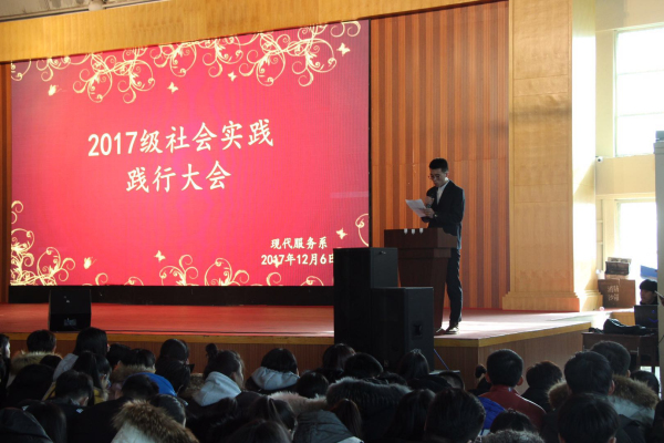 2017年12月6日中午,我院现代服务系17级全体同学及辅导员在学院综合馆举行了赴京沪社会实践欢送大会。