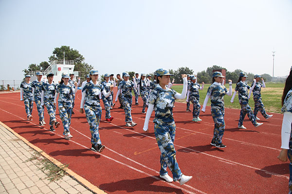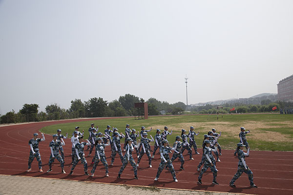 他们的队列整齐,他们行动一致,他们出拳虎虎生威,他们踢腿凌厉有力,他们斗志昂扬,他们势如霹雳。他们是一道亮丽的风景,他们也是一弯燃烧的霓虹,让七月的风吹拂他们年轻的脸旁,让七月的阳光沐浴他们的雨季。