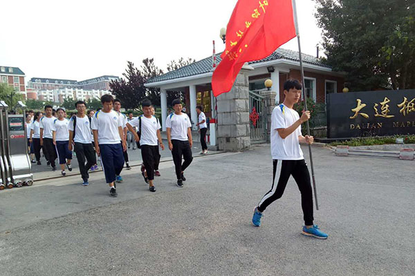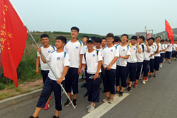 同学们有序走出校园,踏上7公里拉练的征程