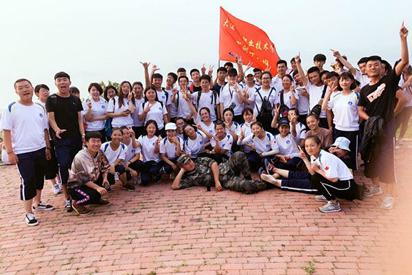 到达目的后,军训班级集体合影留念(一)