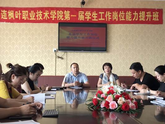 伴着热情如火、激情飞扬的六月,大连枫叶职业技术学院为适应学院“十三五”规划的发展要求,加强学院学生工作队伍建设,明确岗位职责,提高工作水平,交流学生工作经验,于2017年6月22日下午在通关系二楼会议室特举办学院首届学生工作岗位能力提升班。