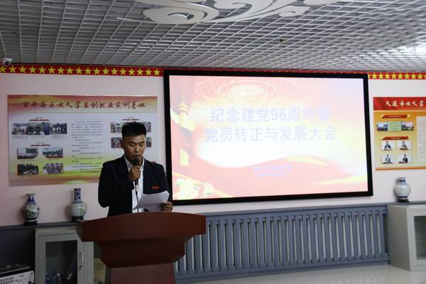 会议开始前,播放了由通关系党小组制作的“祝党96周年生日快乐”的微视频。随后,8名拟发展对象宣读入党志愿,由培养人宣读培养意见,全体党员进行现场投票。投票过程中由两位计票员进行计票,两位检票员对选票进行全程监督,保证了票选结果的公平公正。随后,由5名预备党员宣读转正申请,向党组织汇报在预备期以来的思想和工作情况,培养人发表意见,全体党员现场投票。支部宣传委员解建国宣布支部大会决议,同意吸收8名新党员、转正5名正式党员。