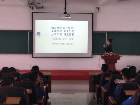 聂俭丽老师从差距来自于业余时间的利用引入开课内容,她从“适应新环境”、“争取早日入党的努力方向”两个问题让大家明白做事脚踏实地的重要性。聂老师引用当下热议的反腐电视局“人民的名义”中一段视频,视频中,老党员陈岩石讲述了他年轻时入党的动机,他说“唯有共产党员才能扛起炸药包,也唯有共产党员才能扛起那份责任。加入共产党就要时刻准备把自己奉献给党,这也是每个党员的荣耀!”。在场学员无不为其振奋,其中一些同学还留下了感动的泪水,互动中,16工程班的同学表示一定要加入中国共产党。聂老师给学员们再次讲解党的性质和奋斗目标,结合当下的案例,让同学们更加坚定尽快加入党组织的决心。聂老师教育学员做人做事做学问,梦想责任助飞翔,当代大学生要诚实守信、虚心学习、敢于担当、学会感恩、学会选择,要积极接受党组织的考察和考验,争取早日迈进党组织的大门。