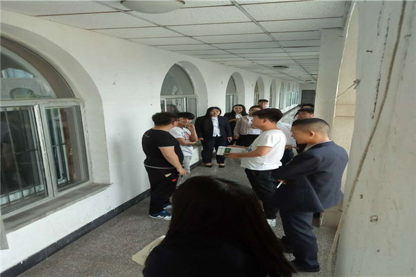 会议中隋新老师的带领各班级团支书来到船舶系楼前,明确本次开会目的并说明此次活动的意义
