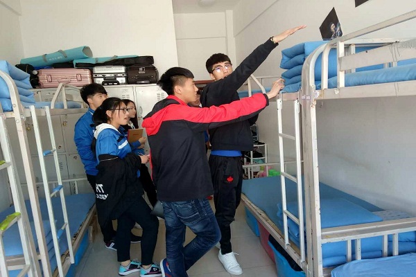 首先,王和彬老师召集各班级班长进行集合,详细传达了本次检查的内务标准及要求。在得到同学们的响应之后带领部员对三、四号楼进行了检查,主要检查寝室卫生、内务整理、以及寝室内是否有烟头、违章电器等违反学院校规校纪的行为进行了检查。检查结果表示:各寝室卫生干净,被褥整齐,无违章电器等违规现象。同时检查期间还对优秀寝室进行了记录,通过本次改革将对连续四次被评为优秀的寝室提供免检寝室的奖励,对于不合格寝室除要求其班长对寝室整改外,王和彬老师也会对各位班长细心指导其主要整改位置。