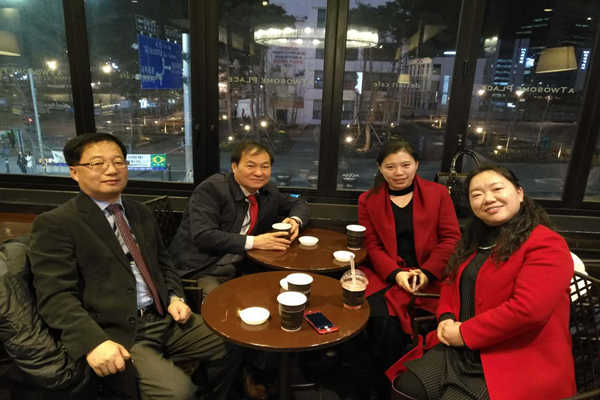2月26日,走访韩国朝鲜大学,看望我院交换生与留学生。受到该校的国际交流处部长、国际贸易类专业教授的热烈接待。并与我院留学生进行深入交谈,学生从学习状况到个人素养都得到了极大的提高,并准备在明年三月份攻读研究生。