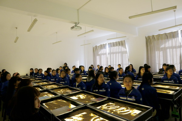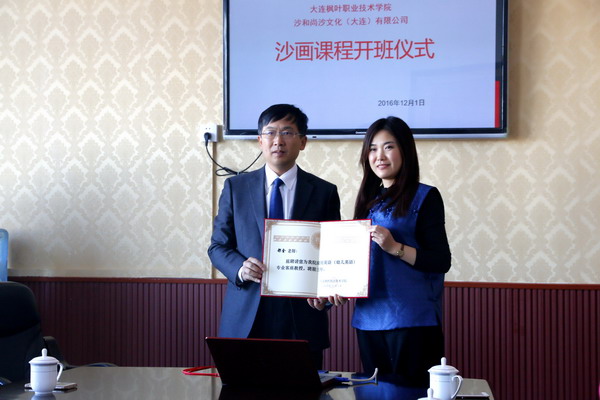 2016年12月1日,为提高珠宝与国际教育学院幼师专业的美术专业技能,我院特邀请大连沙和尚文化有限公司都金老师莅临我院为16级幼师专业学生做题沙绘画培训讲座。