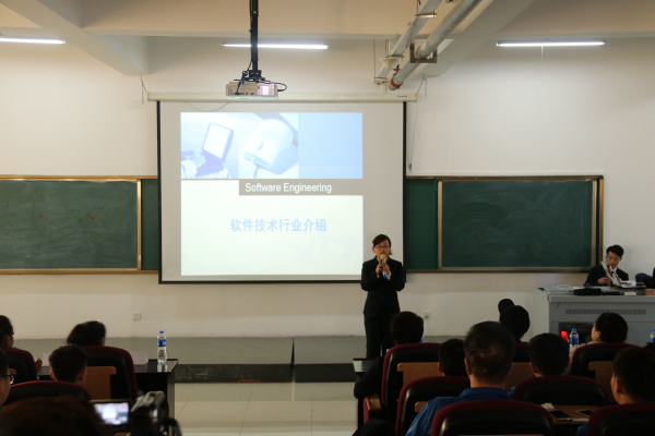 汇报在专业长曲凌老师介绍软件行业现状、需求与发展中拉开序幕。接下来指导教师邢景春进行了课程说明,他表示目前我们的课程体系在国内处于领先水平,并指出同学们存在的主要问题及今后的努力方向。