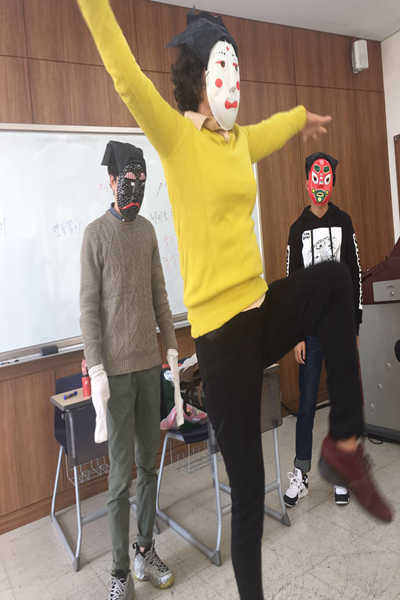 老师在课堂上带我们欣赏韩国面具舞