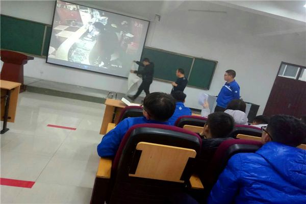 吕老师首先从社会实践中曾经出现过的不安全事件为切入点,深入浅出的剖析问题产生的原因和预防措施,要求同学们在实践岗位上,一要树立安全意识掌握安全知识;二要熟悉记住工作环境和居住环境的安全出口和逃生路线;三要注意出行的安全,不乘坐黑车、摩的和没有营运手续的车辆;四要严格操作规程,遇事要冷静;五要注意网络防骗和交往安全。其次是结合交通事故、预防传销、暖手宝爆炸、热的快起火等视频案例,边观看边讲解,分析事故原因,找出解决办法。案例比较直观展现了事故带给人们的伤害,给同学们视觉上带来冲击的同时也提醒同学做好自我的安全防护,出门在外不张狂、不逞能、不聚众、不围观,遇事多向老师或实践单位领导沟通汇报。最后是现场模拟,课堂上设置火场,现场给同学们演示灭火器、灭火毯灭火的动作要领和注意事项,让同学们明白,火灾并不可怕,只要沉着冷静,使用正确的扑救方法,还是很容易扑灭初起火灾的。