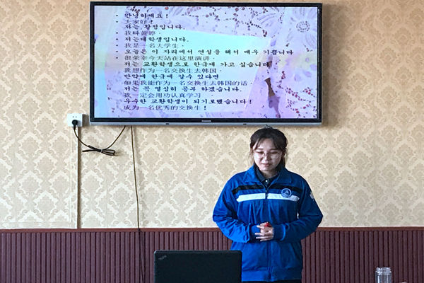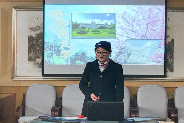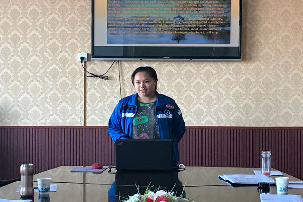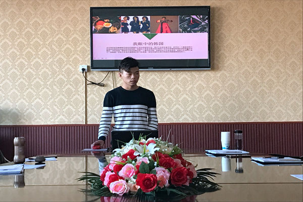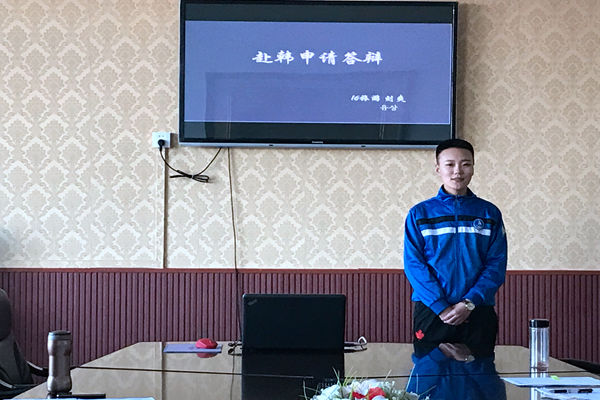 答辩开始,首先由老师们简要介绍了答辩流程。学生自己介绍PPT的内容,然后回答答辩老师提出的相应问题,同时老师还提出了答辩过程中需要注意的事项。交换生分别从自我介绍、为什么要选择参加交换生、对语言学习的情况以及去了外国院校所制定的学习计划。老师们针对PPT各个方面提出问题,让他们进行当场答辩,但这并没有难倒答辩的同学,他们利用自己积累的丰富学识出色地做出回答,整场答辩在紧张有序的氛围下进行并顺利结束,于9日下午进行韩语和英语的测试。